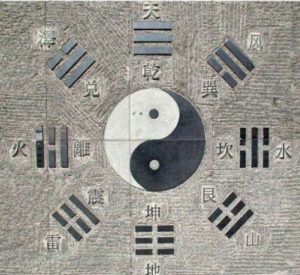 ⼋卦および九宮は、無極虚空から太極を⽣み出す、太極は陰陽に分かれてそれは天と地の両極になる。天と地に分かれると四⽅が⽣まれ、これを《四象》と⾔う。